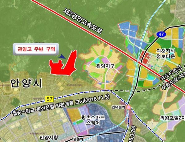 안양 관양고 주변 도시개발사업은 2022년 준공을 목표로 1,350여세대 주거 단지와 주차장, 사회복지시설 등 기반시설을 조성하는 사업으로 3기 신도시를 포함한 수도권주택 30만호 공급계획에 포함된 사업지구이다.