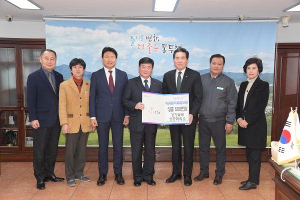 경기북부상공회의소는 지난 19일 동두천시를 방문해 코로나19 예방을 위해 성금 500만원을 전달했다.