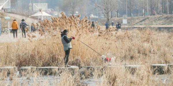 며칠간 이어졌던 맹추위가 누그러진 지난 20일 오후 의왕시 학의천 산책로에 많은 시민들이 나와 여유로운 시간을 보내고 있다.