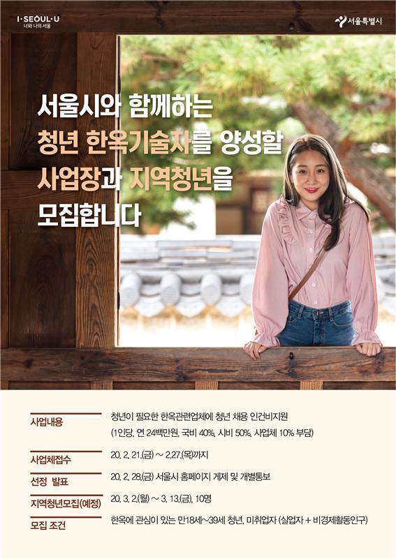 서울시는 ‘청년 한옥기술자 양성 지원 사업’에 참여할 청년과 사업체를 각각 모집한다.