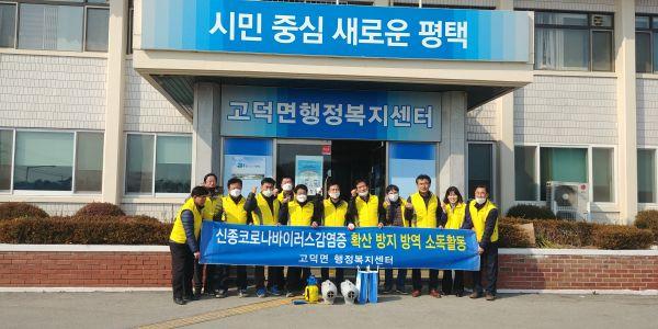 평택시 고덕면행정복지센터는 농촌지도자회와 함께 지난 20일 코로나19 감염증 확산방지를 위한 방역 소독활동을 실시했다.