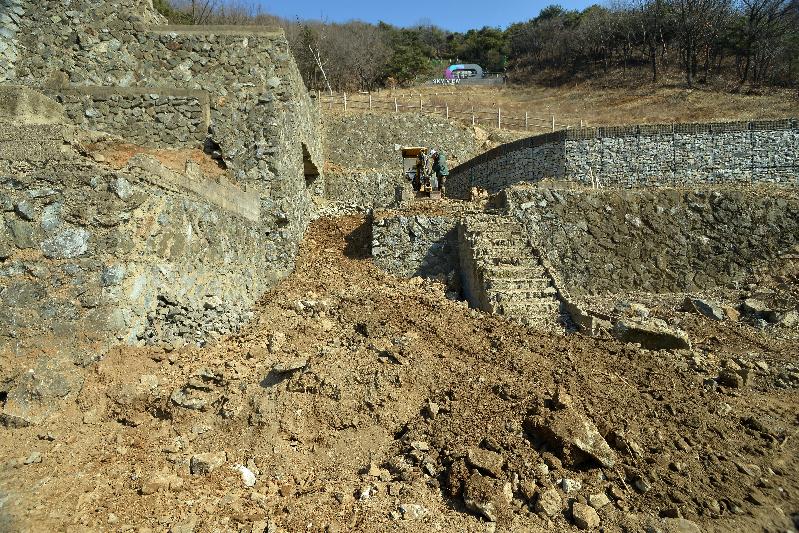 이어 2단계 사업으로 광물 체험 놀이터 일원 2700㎡의 오염 토양을 파내서 야적장에 적치하는 공사를 3월 말까지 진행한다. 야적장에 쌓인 이 오염토를 세척해 매립하면 토양 오염 정화사업은 모두 마무리된다.