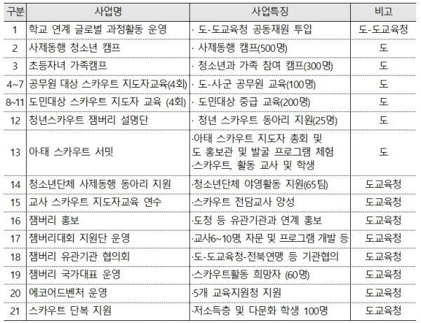 전북도는 21일 전주원색명화마을에서 전라북도교육청, 한국스카우트전북연맹과 함께 유기적 협력체계 구축 및 2020 잼버리 협력사업 추진을 위해 ‘도·도교육청·전북연맹 실무협의 워크숍’을 개최했다.