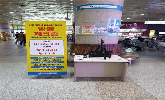 인천시는 대구·경북지역에 코로나19 확진자 증가함에 따라 인천 유입 차단을 위해 지난 20일부터 인천종합터미널에 열화상카메라 3대를 설치하고 대합실 및 주차장 등에 수시소독과 방역에 총력을 기울이고 있다.