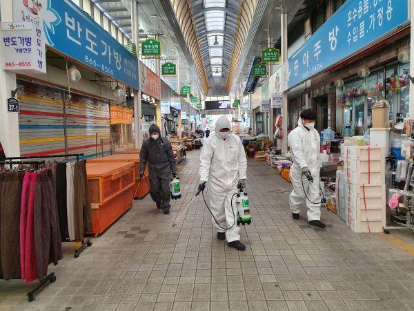 방역소독은 안전한 전통시장 및 상점 환경을 유지하고 코로나19에 대한 주민들의 불안 심리 해소하기 위한 취지로 실시됐다.