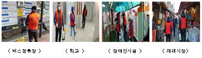 1단계로 17일 1,000여명을 공공일자리 사업으로 선발해 시설의 긴급성, 파급효과 등을 고려해 어린이집, 경로당, 재래시장, 체육문화센터 등을 중심으로 인력을 투입, 안심방역을 추진 중이다.