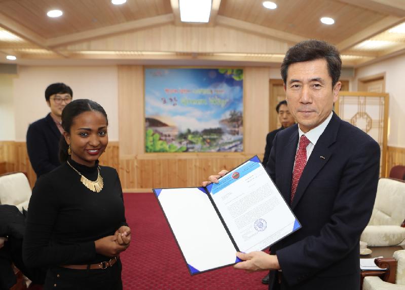 | 에디오피아 아다마시장 딸인 루하마 아베베씨 교류희망 친서 전달<미디어타임즈> |
