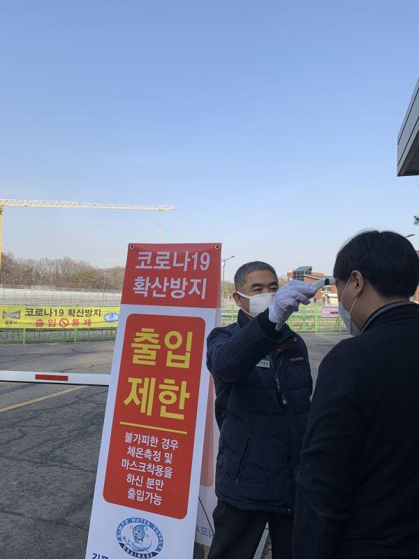 이에 따라 김포시 상하수도사업소는 코로나19 감염에 선제적으로 대응하고자 김포시에 확진자가 발생한 21일부터 사업소 출입을 전면 통제하고 있으며 불가피한 경우에 한해 체온확인, 손소독, 마스크착용 시 출입이 가능하다.