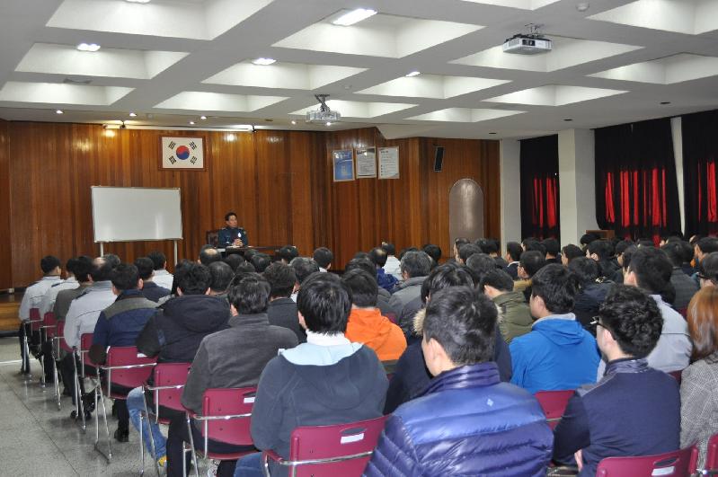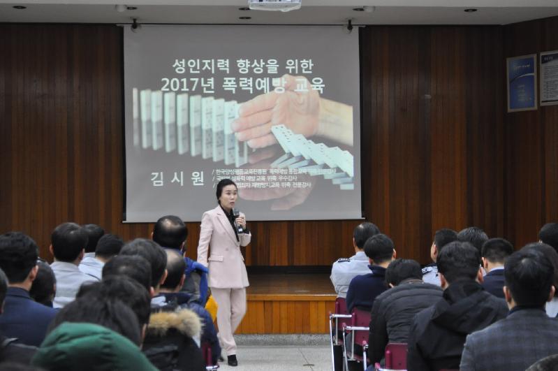 | 경찰서 3층 강당에서 서장, 과장 직원 등 320여 명이 참석한 가운데 직장교육 및 직장 내 성희롱 성폭력 예방 교육을 실시했다.(사진=거제경찰서 제공) |