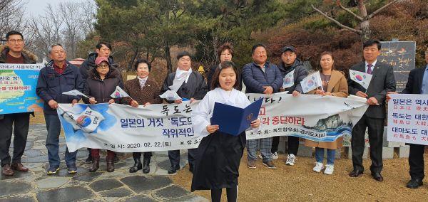독도향우회 경기도지회는 지난 22일 광명동굴 평화의 소녀상 앞에서 일본의 독도침탈 행위를 강력히 규탄했다.