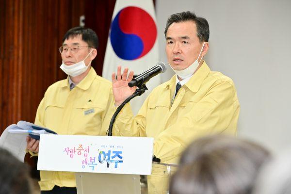 이항진 여주시장은 24일 긴급 기자회견을 갖고 불특정 다수의 왕래가 집중되는 5일장 폐쇄 결정과 신천지 집회장소 및 명단 확보에 주력한다는 등의 내용이 담긴 기자회견문을 발표했다.