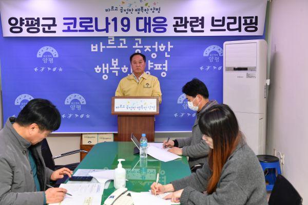 양평군은 지난 23일 코로나19 위기경보단계가 ‘심각 단계’로 격상됨에 따라 지난 24일 오후 2시 군청 브리핑룸에서 기자회견을 열고 코로나19 대응방안에 대해 밝혔다.