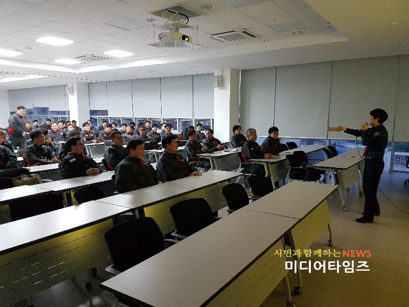 | 인천 남부 署 기아자동차 임직원 대상 가정폭력ㆍ아동학대 예방 교육 모습.<ⓒ미디어타임즈> |