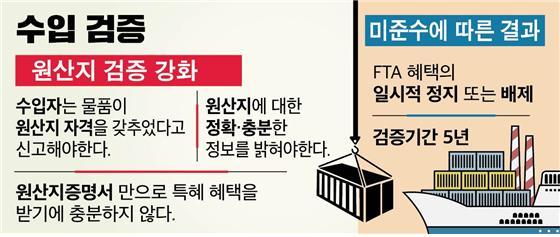개정안의 내용을 좀더 살펴보면, 특혜를 신청하는 수입자에게 원산지요건에 대한 충분한 정보 보유와 제공, 그리고 합당한 주의 의무를 부여했고 원산지검증 공무원이 특혜신청에 대한 합리적 의심이 있는 경우 추가정보를 요청할 수 있고 미제출시 특혜대우를 중지할 수 있도록 권한을 강화했다.