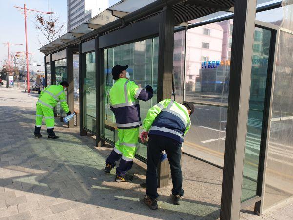 지역 내 버스정류장 중심으로 방역작업 주 3회 이상 실시