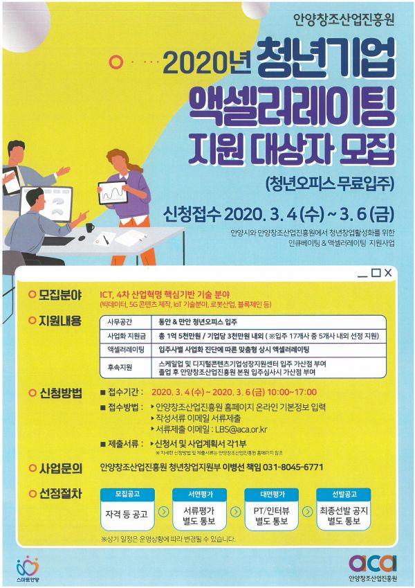 안양시는 오는 3월 6일까지 창업초기기업을 위한 ‘청년기업 액셀러레이팅 지원’ 대상자인 ‘청년오피스’ 입주기업을 모집한다.