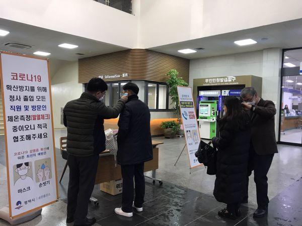 또한, 수많은 시민이 오가는 송탄출장소 청사는 방역소독 횟수를 늘리고 1개 출입구만 개방해 직원을 포함한 모든 출입자의 체온 체크, 마스크 미착용자 마스크 배부 등 감영예방 조치를 강화하고 있다.
