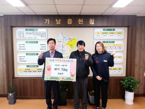 가남읍은 25일 ㈜삼호에서 가남읍 관내 저소득 가구의 영양지원을 위한 돼지고기 70kg을 후원했다고 밝혔다.