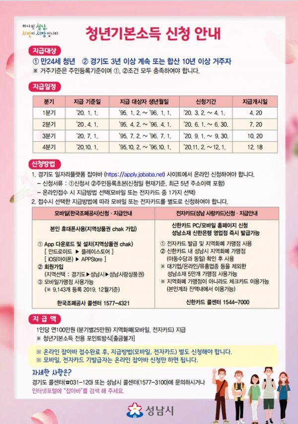 1분기 신청 대상은 1995년 1월 2일부터 1996년 1월 1일 사이에 태어난 이들 가운데 경기도에 3년 이상 계속 거주하고 있거나 경기도 거주 합산 10년 이상인 청년이다.