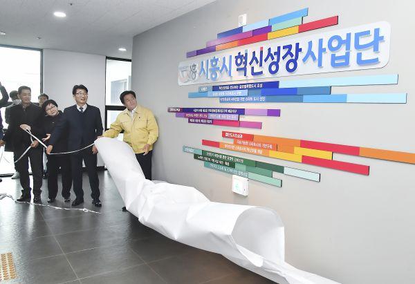 시흥시 혁신성장사업단이 현판식을 열고 혁신성장을 선도하는 글로벌 복합도시를 조성하기 위한 본격적인 출발을 알렸다.