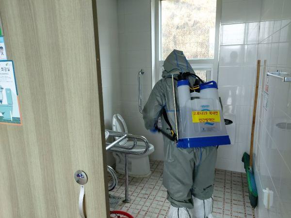 방역단은 주민들이 많이 출입하는 화장실과 접촉이 잦은 문손잡이 등을 집중적으로 소독했으며 소독방법에 대한 시범과 자체 소독의 중요성을 강조했다.