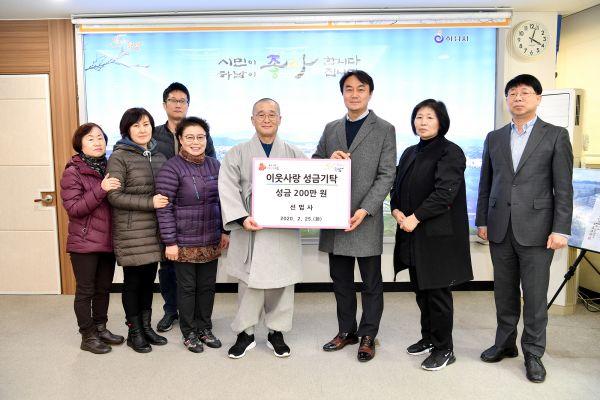 하남시 교산동에 소재한 선법사는 지난 25일 하남시에‘하남 사랑愛나눔’성금 200만원을 전달하고 기탁식을 가졌다.