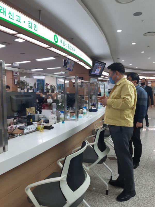 엄태준 이천시장은 25일 종합민원실을 방문해 어려운 상황에서도 업무에 최선을 다하고 있는 직원들을 격려했으며 “시민들이 안심하고 민원실을 방문할 수 있도록 소독과 청결유지에 총력을 기울일 것이며 시민 모두가 바이러스 확산 방지를 위해 함께 노력 해주길 바란다”고 밝혔다.
