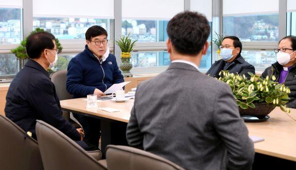 광주시는 지난 25일 시장실에서 코로나19 지역전파 방지를 위한 기독교연합회 관계자와의 간담회를 개최했다.