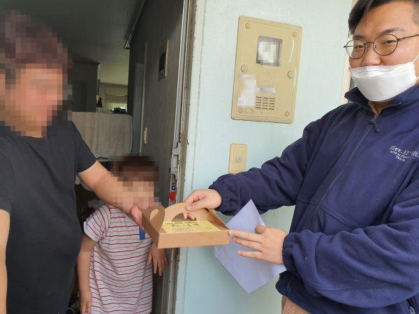 호두파이를 받은 이 어머니는 “지금 코로나 사태로 인해 아이들이 집에만 있는 상황에서 소득이 적어 아이들 간식비용이 부담스러웠는데, 이렇게 호두파이를 가져다주셔서 아이들도 행복해하고 저도 행복해하는 아이들의 모습을 보니 행복하다”며 함박웃음을 지었다.