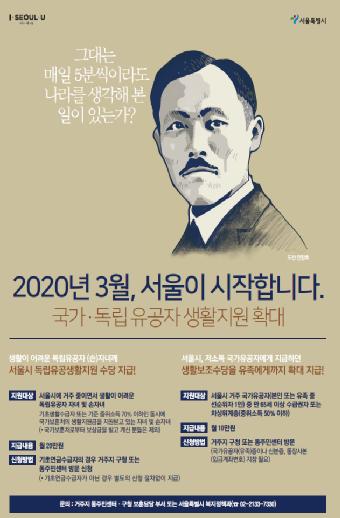 서울시가 오는 3월 1일부터 독립유공자 및 국가유공자의 저소득 유가족에 대한 생계지원을 시작한다.
