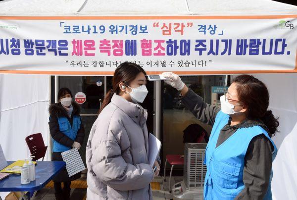의정부시는 코로나19 위기 경보 단계가 “심각”으로 격상됨에 따라 26일부터 민원인·공무원을 비롯한 모든 청사 방문객들을 대상으로 발열 검사를 실시한다.