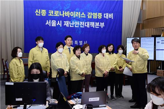 이날 격려방문에서 서울시 기획조정실 조인동 실장은 ‘코로나바이러스 19’ 위기경보가 심각으로 격상된 이후 재난안전대책본부에 시설협력반, 구조구급반, 자가격리반 등을 신설해 총12개팀으로 확대 운영하는 등 서울시의 모든 행정력을 집중하고 있다고 보고했다.