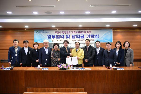 포천시는 26일 시정회의실에서 ‘포천시-평강랜드, 지역사회 발전을 위한 업무협약 체결 및 장학금 기탁식’를 개최했다.
