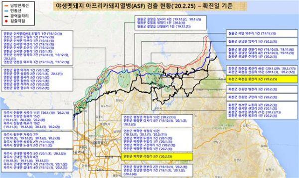 화천군에서 3건, 연천군에서 3건 검출되어 2월 25일 기준으로 누적 263건 확진