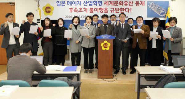 이어 일제강점기 군함도 등 강제노역 피해자에 대한 일본정부의 진정한 사죄와 정당한 배상을 요구하고 유네스코에 해당 유산의 세계문화유산 등재 삭제를 촉구했다.