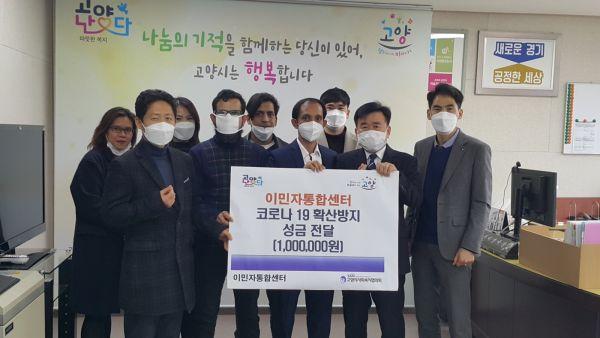 고양시은 이민자통합센터와 지난 26일 고양시청에서 고양시 취약가구의 코로나 19 감염 예방을 위해“코로나 19 감염 예방을 위한 성금전달식”을 가졌다.