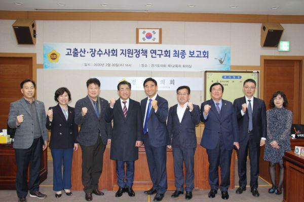 ‘경기도의회 고출산·장수사회 지원정책 연구회’ 회장 장태환 의원은 지난 26일 제1교육위 상임위 회의실에서 ‘고출산 ·장수사회를 위한 경기도형 정책모형에 관한 연구’라는 주제로 정책연구용역 최종보고회를 개최했다.