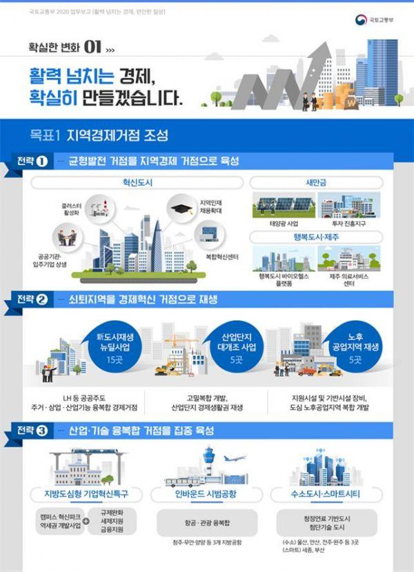 다음은 경제 활력과 민생 현안을 위한 2개 핵심과제를 포함한 2020년도 국토교통부 업무계획의 주요내용이다.