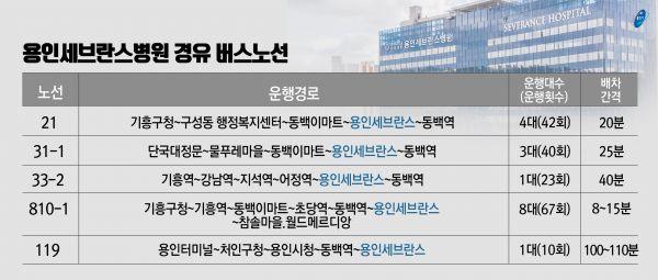 또 기흥구와 수지구에서 병원까지 직접 또는 환승을 해서 갈 수 있도록 21번, 33-2번, 810-1번 마을버스가 용인세브란스병원 정류장에 정차하도록 했다.