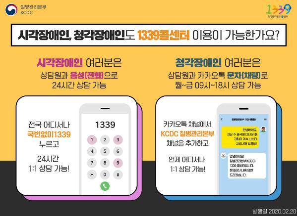 코로나19 발병 및 의심 시 행동요령을 수어 영상으로 제작해 보급하고 1339콜센터 사용방법을 안내하고 있다.