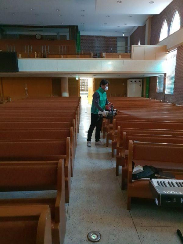 문학동 행정복지센터는 새마을협의회, 새마을부녀회 회원들과 종교시설, 어린이집, 경로당 등에 방역작업을 벌였다.