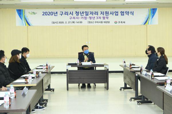 구리시는 지난 27일 1층 종합상황실에서 행정안전부 주관 지역주도형 청년일자리 공모사업에 선정된‘구리시 청년일자리 지원사업’의 참여기업 및 청년들과 3자 협약식을 가졌다.