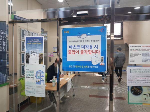 시는 현재 본관 및 민원동, 별관동 중앙현관 3개 입구만을 개방해 청사 출입을 통제하고 있으며 현관에서 방문 기록부를 작성하고 출입과 동시에 손소독과 함께 시 청사 출입자 전원의 마스크 착용을 의무화했다.