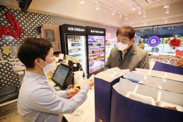 이날 백 시장은 수지구 풍덕천동 파리바게트, 하나로프라자 건물 내 홈플러스 익스프레스와 과일가게 등을 찾았다.