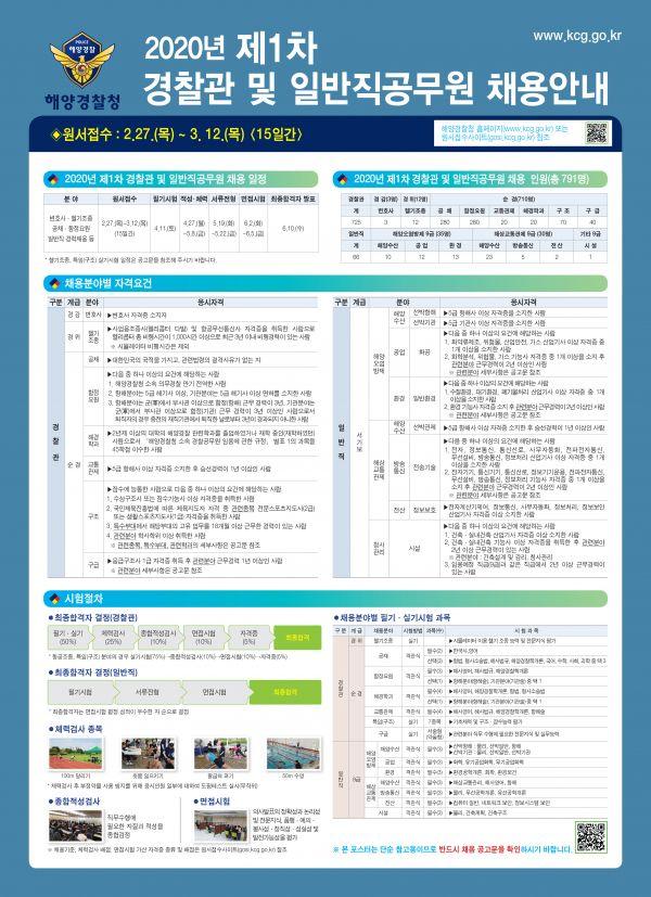 2020년도 해양경찰청 1차 채용 실시… 3월 12일까지 원서접수