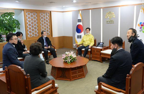 양승조 충남도지사는 28일 도청 접견실에서 한국전해수시스템과 ‘코로나19 예방 물품 전달식’을 개최했다.