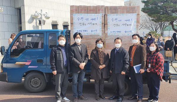 수원시 관내 기업·단체 등이 “취약계층에게 전달해 달라”며 수원시에 마스크·손 소독제 등을 잇달아 기부하고 있다.