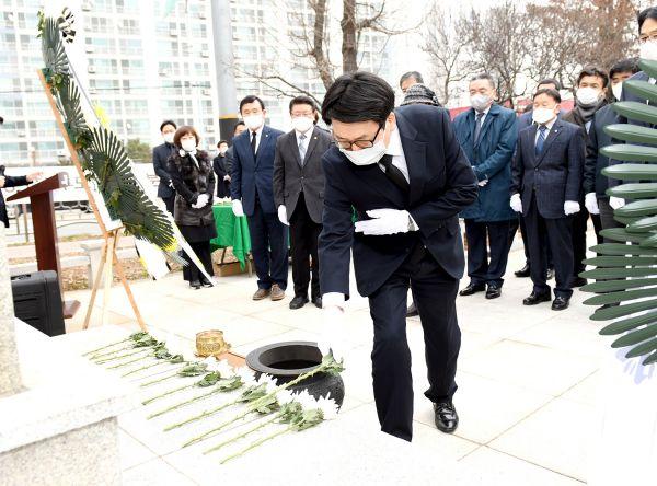이 날 참배는 최종환 파주시장과 국장급 간부공무원, 신옥자 광복회 파주시지회장, 조리읍 사회단체장 등 20여명의 최소 인원만 참석한 가운데 순국선열과 호국영령에 대한 묵념 및 헌화·분향 순으로 진행됐다.