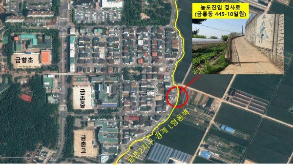 한편 금촌2지구 경계옹벽 보수보강공사를 실시하는 기간 동안 농도와 연결되는 경사로가 통제될 예정으로 주변 도로로 우회가 필요하다.