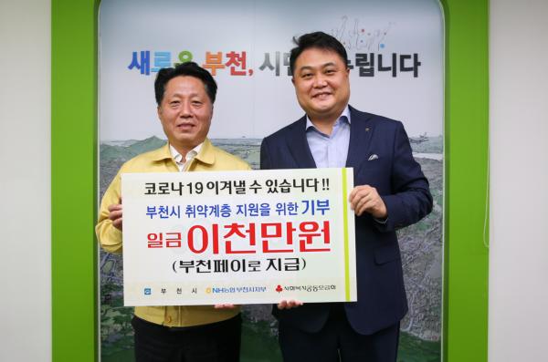부천시는 지난 2월 28일 NH농협 부천시지부에서 저소득 취약계층의 코로나19 예방 물품 구입을 지원해달라며 2,000만원을 시에 기탁했다고 2일 밝혔다.
